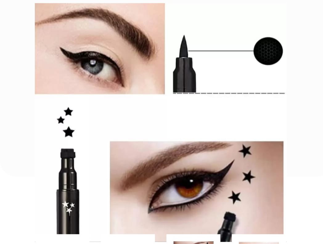 Eyeliner stamp, 2 in 1 Double-headed star stamp eyeliner, waterproof smudge proof long lasting tattoo makeup tool (1 piece)